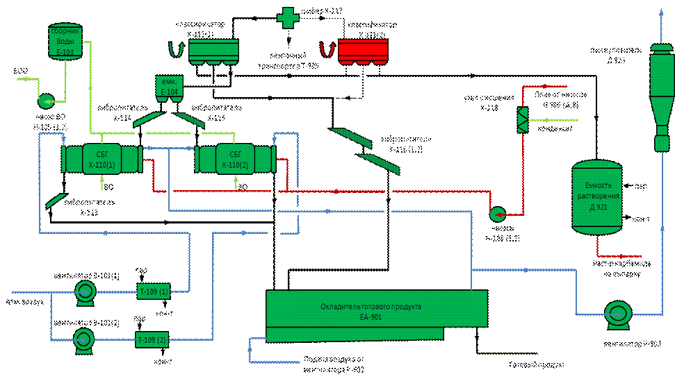 6.3.1 Процессы по схеме с барабанными грануляторами сушилками (БГС)