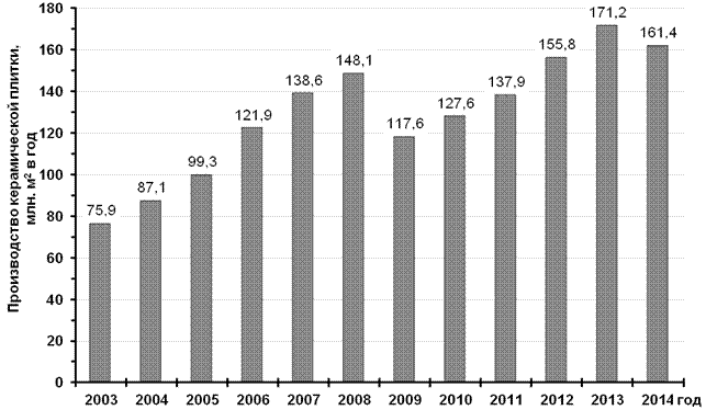 Производство изделий изкерамики относится к числу наиболее динамично развивающихся отраслей российскойэкономики. Начавшийся в 2008 году экономический кризис не оказалстоль заметного влияния на темпы выпуска продукции, как в других отраслях (вчастности, в металлургии), его последствия для различных подотраслей быличастично или полностью нивелированы в течение 2–3 лет. К 2013 году практически все действующиекерамические предприятия вышли на докризисный уровень, некоторые подотрасли, преждевсего производство строительной керамики (кирпич, керамическая плитка), демонстрируютопережающие темпы развития: происходит наращивание выпуска продукции, закладываютсяновые и проходят глубокую модернизацию существующие производственные площадки.