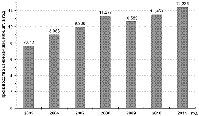 В последующих разделах рассмотреныосновные черты развития подотраслей производства указанных керамических изделийв Российской Федерации (см. 1.2–1.7).