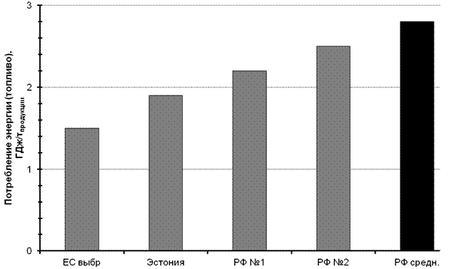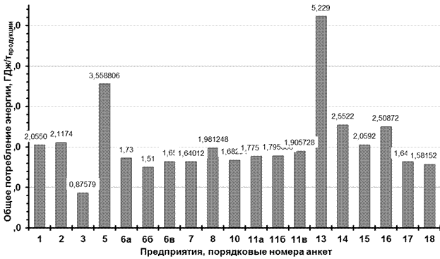 [9]) Как уже отмечено, анкеты прислали 18 наиболее активныхпредприятий, проявивших интерес к участию в разработкеинформационно-технического справочника по наилучшим доступным технологиям.Полученные показатели энергопотребления согласуются с результатамиотечественных и зарубежных исследований и материалами справочного документа ЕС,представленными в 3.1.1.