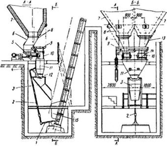 Сырье поступает на склад во фракционированном или нефракционированном виде. В первом случае оно распределяется со склада по приемным бункерам печей, во втором — его вначале отправляют в приемные бункера дробильно-сортировочной установки, а после дробления и рассева ленточными транспортерами распределяют по приемным бункерам обжиговых печей (см. раздел 2.1).