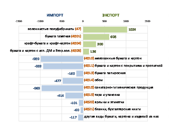 1.1.6 Структура экспорта и импорта целлюлозно-бумажной продукции