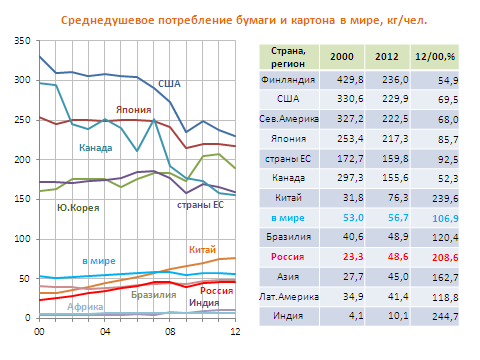 1.1.7 Среднедушевое потребление бумаги и картона в России